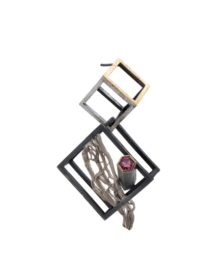 Materials: Silver, 750 gold, rhodolite, patinas