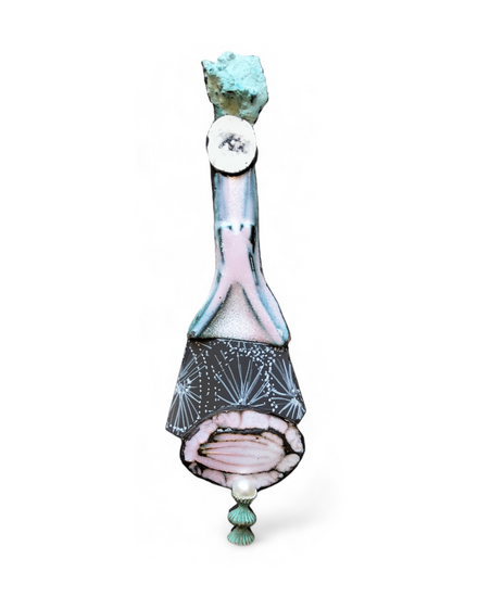 This brooch is part of Silvia Walz’s ongoing Forgotten Ladies series (2004–2025), in which the artist revisits remarkable historical women through assemblage and narrative jewellery. Using fragments, references and symbolic composition, each piece becomes a small wearable portrait shaped by memory, history and interpretation.