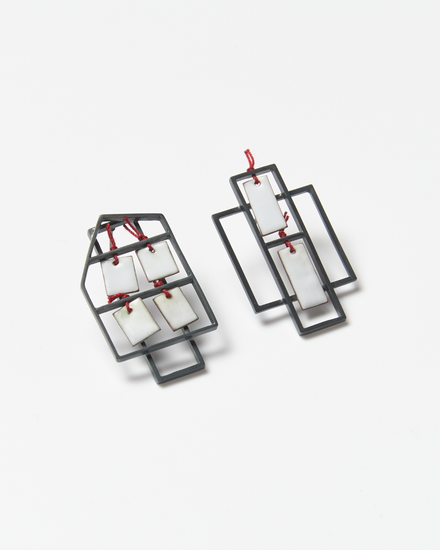 Materials: Oxidized silver, enamel on copper, cotton cord